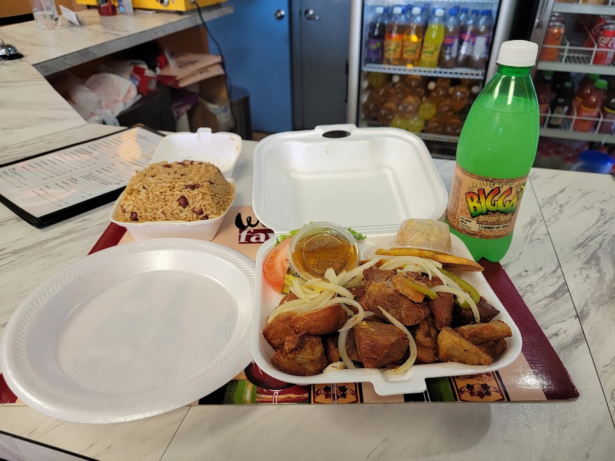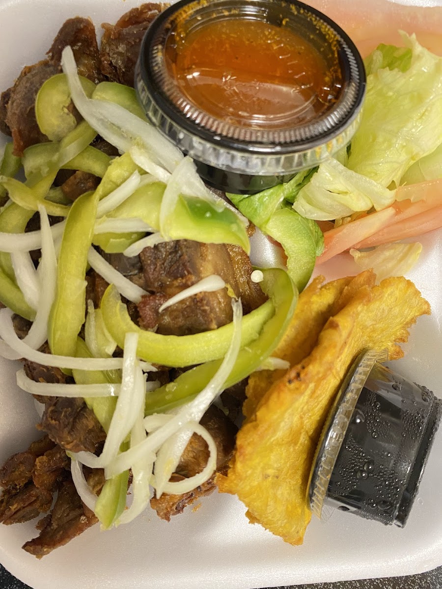 “ The food is always soooooo good and flavorful!!! The guy that takes the orders is so sweet and kind. You can tell He’s proud of the food. They give you a lot of food too! I’ve had the fried fish, griot, and I just ordered the fried turkey. Would recommend everything is always 10/10!!! It’s always cooked To order it. Will be back! ”